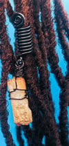 Show off bold energy and unique style with this handcrafted Raw Titanium Quartz Loc Jewel. Wrapped in sleek black wire, this jewel features a natural titanium quartz crystal known for its vibrant aura, strength, and protective properties. Perfect for sisterlocks, microlocs, dreadlocks, or medium locs, this one-of-a-kind accessory adds a mystical, edgy touch while keeping your locs secure and stylish.
