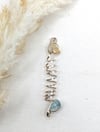 Elevate your style with this genuine .925 sterling silver loc jewelry featuring natural aquamarine and citrine gemstones. Handcrafted with care, this unique loc accessory blends the soothing blue of aquamarine with the warm golden tones of citrine, creating a beautiful balance of calm and energy. The sterling silver wire adds durability and shine, making it a lasting adornment for locs, braids, or twists. Lightweight and easy to wear, this jewel is perfect for everyday styling or special occasions. A meaningful gift for gemstone lovers, natural hair wearers, or anyone who values handcrafted jewelry with intention.. Sizes Range from X-Small (Sister/Microloc) to Jumbo (Freeform).