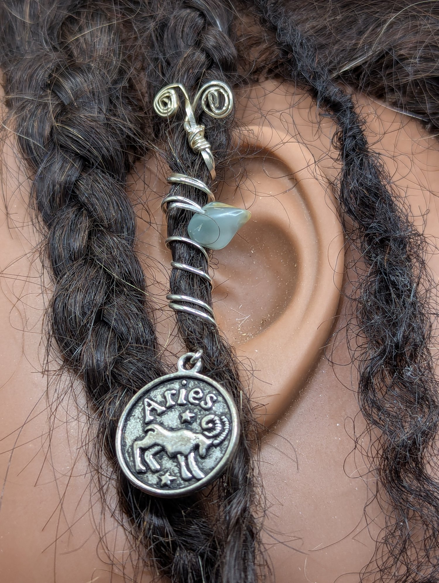 Genuine .925 Sterling Silver Loc Jewel. Channel the bold energy of Aries with this handcrafted sterling silver loc jewel featuring a genuine bloodstone crystal. Known as a stone of courage, vitality, and strength, bloodstone makes this hair accessory both stylish and meaningful. Perfect for dreadlocks, sisterlocks, and braids, this lightweight jewel adds a touch of zodiac-inspired elegance to your look. A unique gift for Aries or anyone drawn to powerful healing stones.. Sizes range from X-Small (Sister/Microloc) to Jumbo (Freeform).