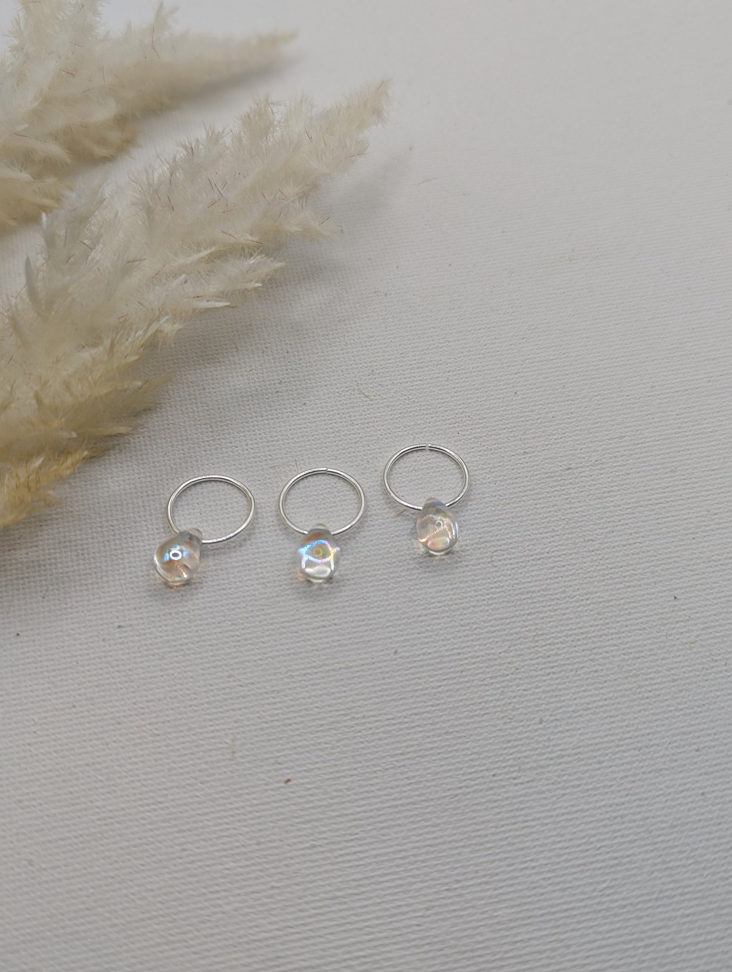 Add elegant shine to your hairstyle with this set of three sterling silver jump rings featuring a delicate teardrop bead. Handcrafted with genuine .925 sterling silver, these lightweight rings are designed to slip easily onto locs, braids, or twists, giving your hair a touch of timeless beauty. The smooth teardrop bead adds a graceful accent, making this set perfect for both everyday wear and special occasions. Wear them individually for a subtle look or stack them together for extra sparkle. A meaningful gift for loc wearers, natural hair lovers, or anyone who enjoys unique, handcrafted jewelry. Sizes Small and Large.