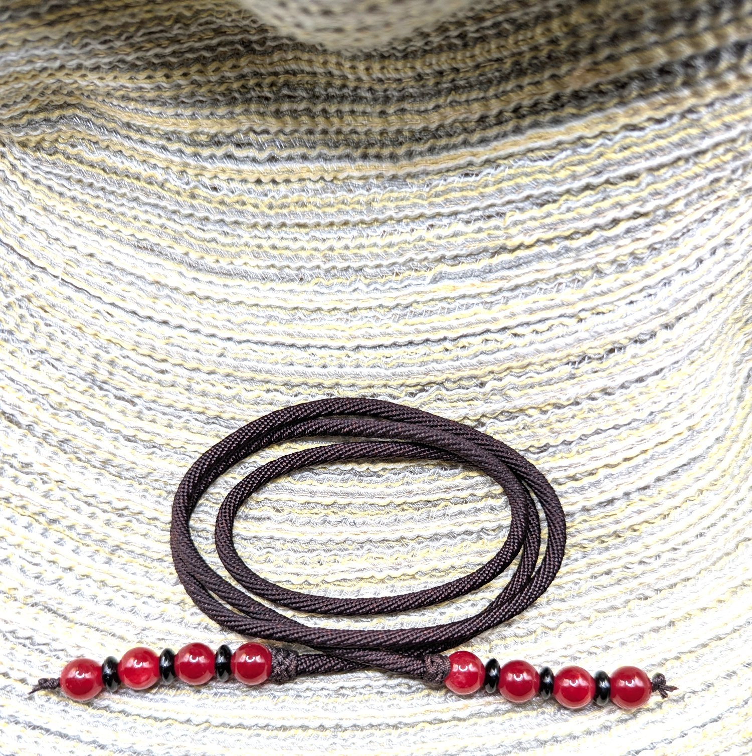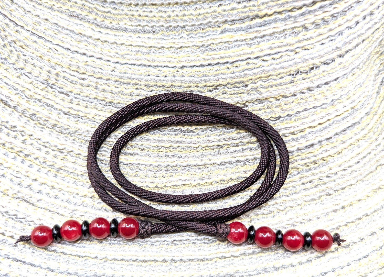 Loc Tie-Blood red stone. It's made from non-stretch polyester material, so it's best to use a stretch band to hold your bun in place, then wrap your Loc Tie around it to decorate. Works well for holding your locs in place. Good for Buns, ponytails, and updos