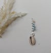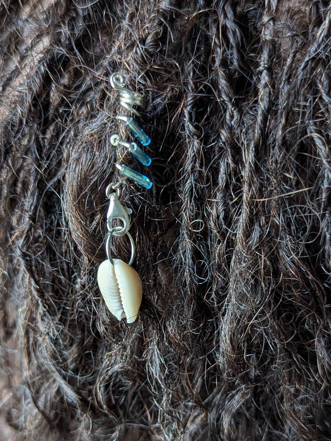 Genuine. 925 Sterling Silver Wire Loc Jewelry with Olivine and Cowrie Shell. Bring island vibes to your style with this handmade loc jewel featuring a natural cowrie shell, wrapped in sterling silver wire with green and aqua gemstone beads. Perfect for dreadlocks, braids, or twists, this boho-chic hair accessory adds a touch of beachy elegance and spiritual symbolism to your look. Ideal for festival wear, summer styles, or everyday adornment. sizes range from Ex-Small (SisterMicrolocs) to jumbo (freeform).