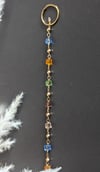 This dainty piece is a fusion of subtle grandeur, designed to enhance your locs or braids with a vibrant pop of color and a touch of golden shimmer. The length is 13". It's secured to your loc by a jump ring.