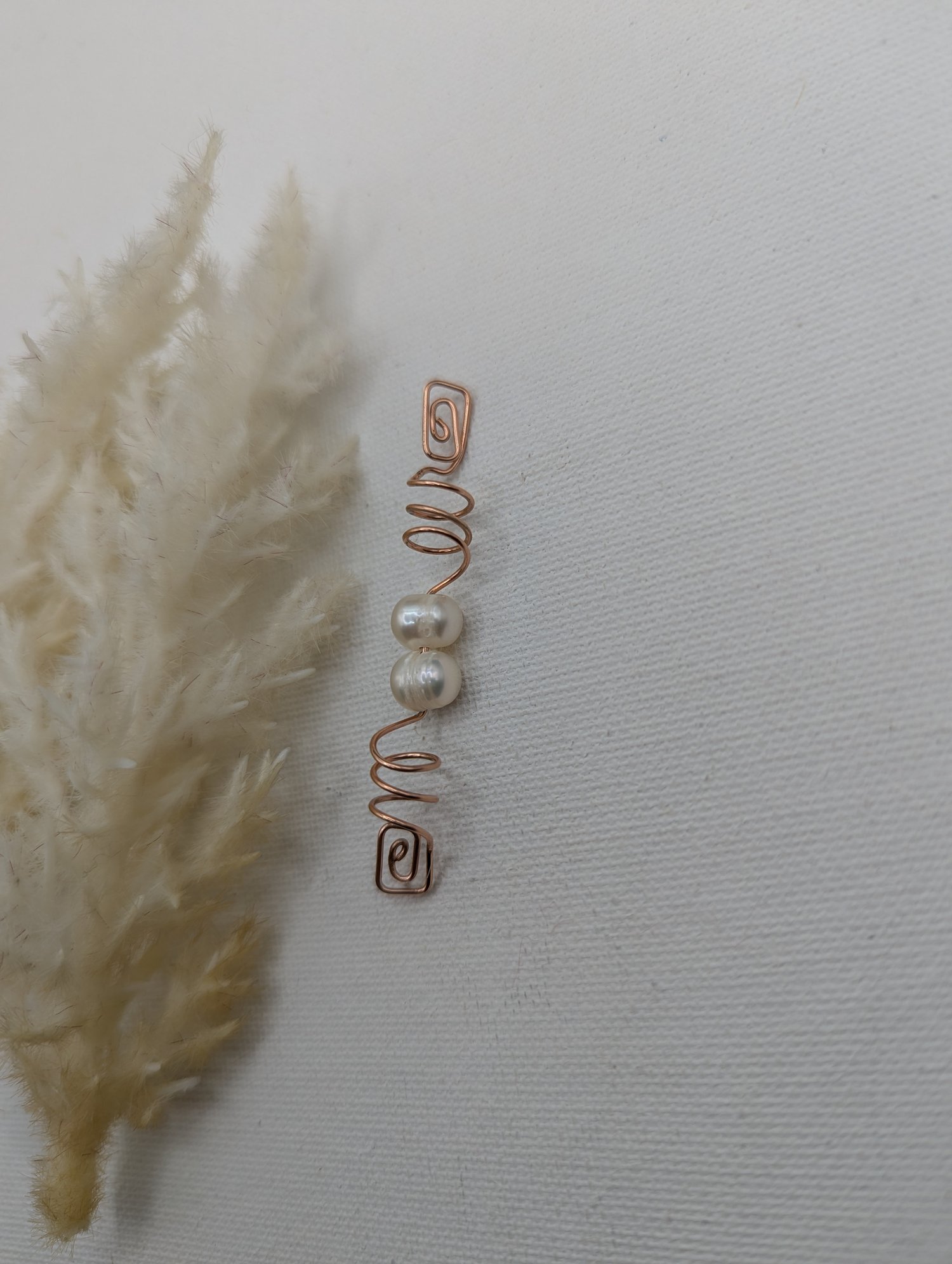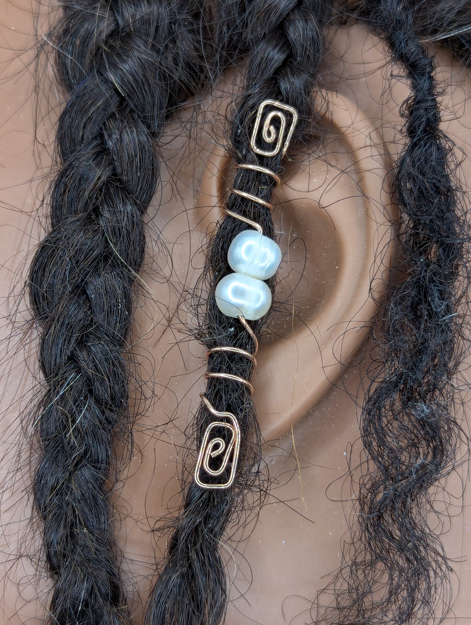 14K Rose gold-filled wire with Freshwater pearls. Very beautiful with grace and style. Elegant rose gold wire-wrapped loc jewel featuring luminous freshwater pearls. Perfect for dreadlocks, braids, or twists, this handmade hair accessory adds a touch of sophistication and boho charm. A unique gift for natural hair lovers, brides, and those who want to elevate their style with timeless beauty. Can choose sizes from X-Small (Sister/Microloc) to Jumbo (Freeform).