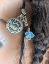 Genuine .925 Sterling Silver Wire Loc Jewel. Celebrate your zodiac sign with this unique Pisces loc jewelry charm. Featuring a detailed Pisces medallion paired with a handcrafted wire spiral and soothing blue gemstone beads, this piece combines astrology with artistic design. Perfect for locs, braids, twists, it’s a meaningful accessory for anyone born under the Pisces sign. Lightweight and stylish, this charm symbolizes intuition, creativity, and flow—ideal for expressing your cosmic energy in everyday wear. Sizes Range from X-Small (Sister/Microloc) to Jumbo (Freeform).