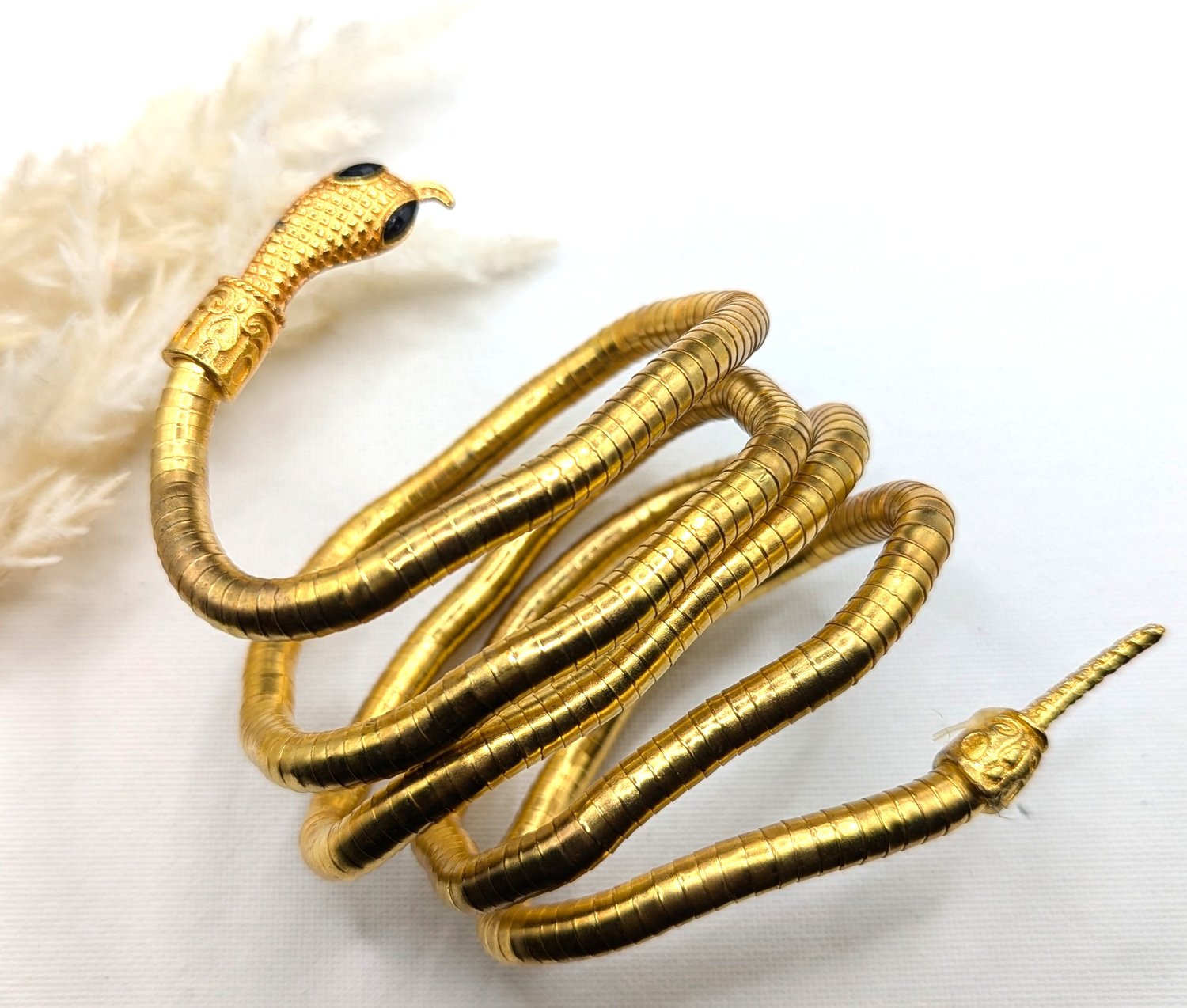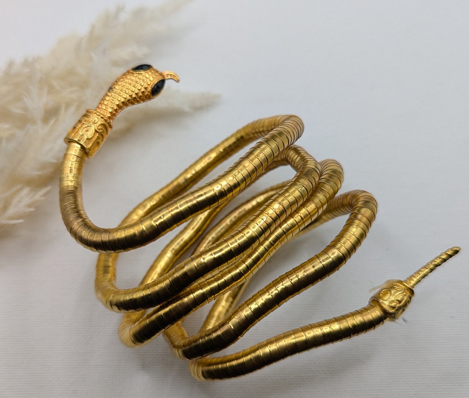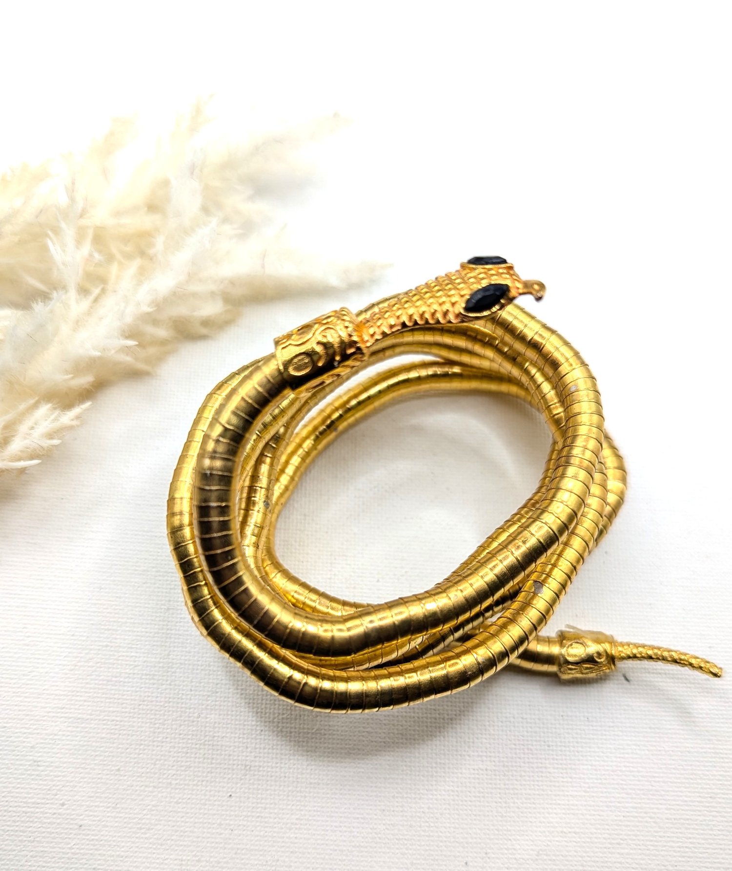 Make a bold statement with this gold snake loc tie, featuring a coiled serpent design with detailed scales and striking black eyes. Flexible and durable, this unique hair accessory wraps securely around locs, braids, or twists, adding an edgy and regal touch to your style. Perfect for festivals, special events, or everyday wear, this serpent-inspired loc jewelry is both eye-catching and symbolic of strength and transformation.