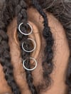 Add elegant shine to your hairstyle with this set of three sterling silver jump rings featuring a delicate teardrop bead. Handcrafted with genuine .925 sterling silver, these lightweight rings are designed to slip easily onto locs, braids, or twists, giving your hair a touch of timeless beauty. The smooth teardrop bead adds a graceful accent, making this set perfect for both everyday wear and special occasions. Wear them individually for a subtle look or stack them together for extra sparkle. A meaningful gift for loc wearers, natural hair lovers, or anyone who enjoys unique, handcrafted jewelry. sizes are Small and Large.