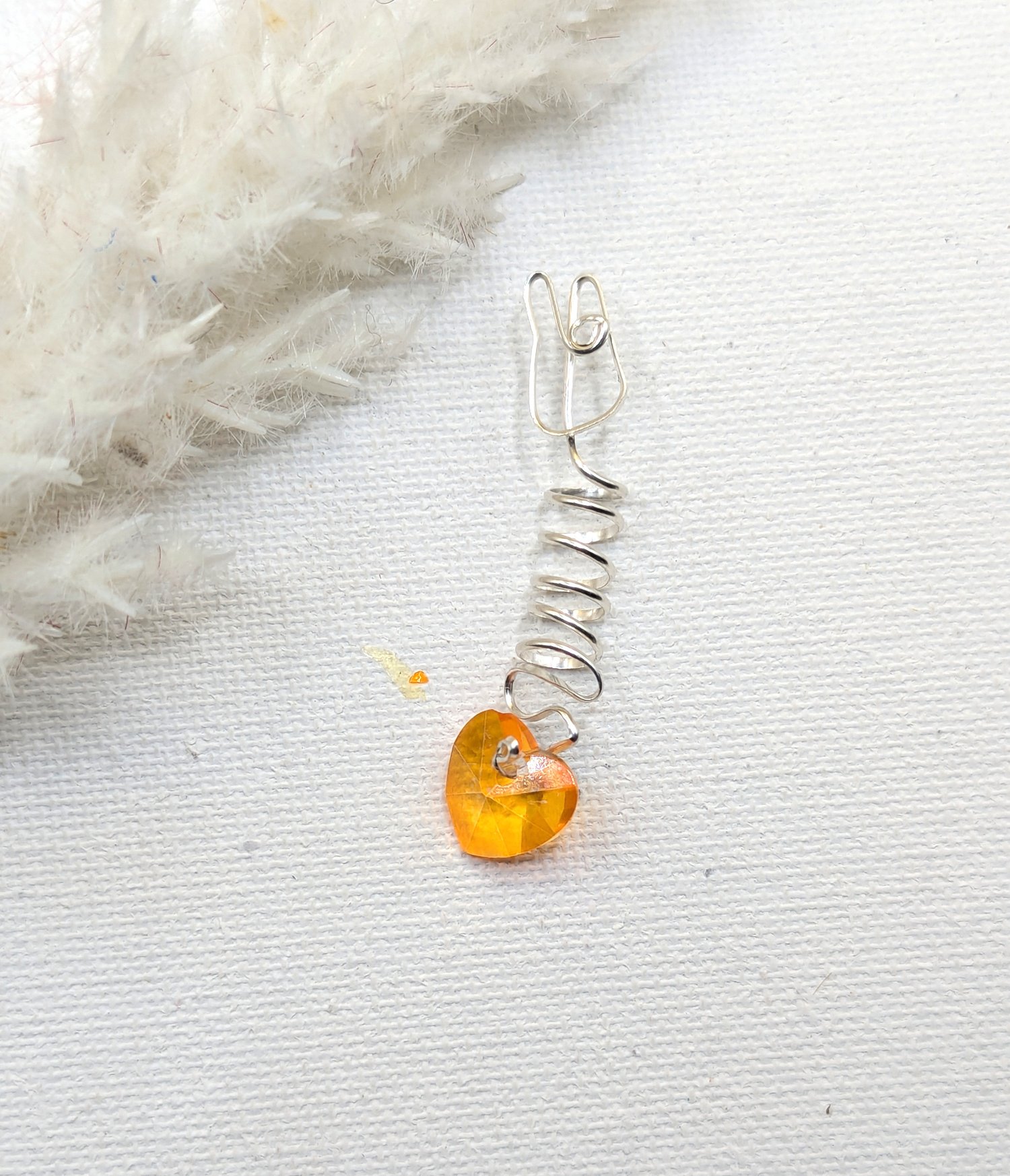 Soft sparkle, subtle statement. The Golden Heart Loc Jewel is handcrafted with genuine materials. 925 sterling silver wire and finished with a radiant Swarovski crystal heart that catches the light without overpowering your locs. Designed to blend seamlessly with your locs. This piece offers a delicate shimmer that feels intentional, not loud. The spiral wire wrap hugs the loc comfortably, while the heart crystal adds a touch of warmth, love, and quiet luxury. Perfect for everyday wear or special moments when you want your locs to speak softly—but beautifully. Each piece is handmade, so no two are ever exactly alike, just like your loc journey.