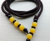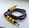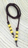 Loc Tie with Yellow beads It's made from non-stretch polyester material, so it's best to use a stretch band to hold your bun in place, then wrap your Loc Tie around it to decorate. Great For Updos, Knots, And Ponytails.