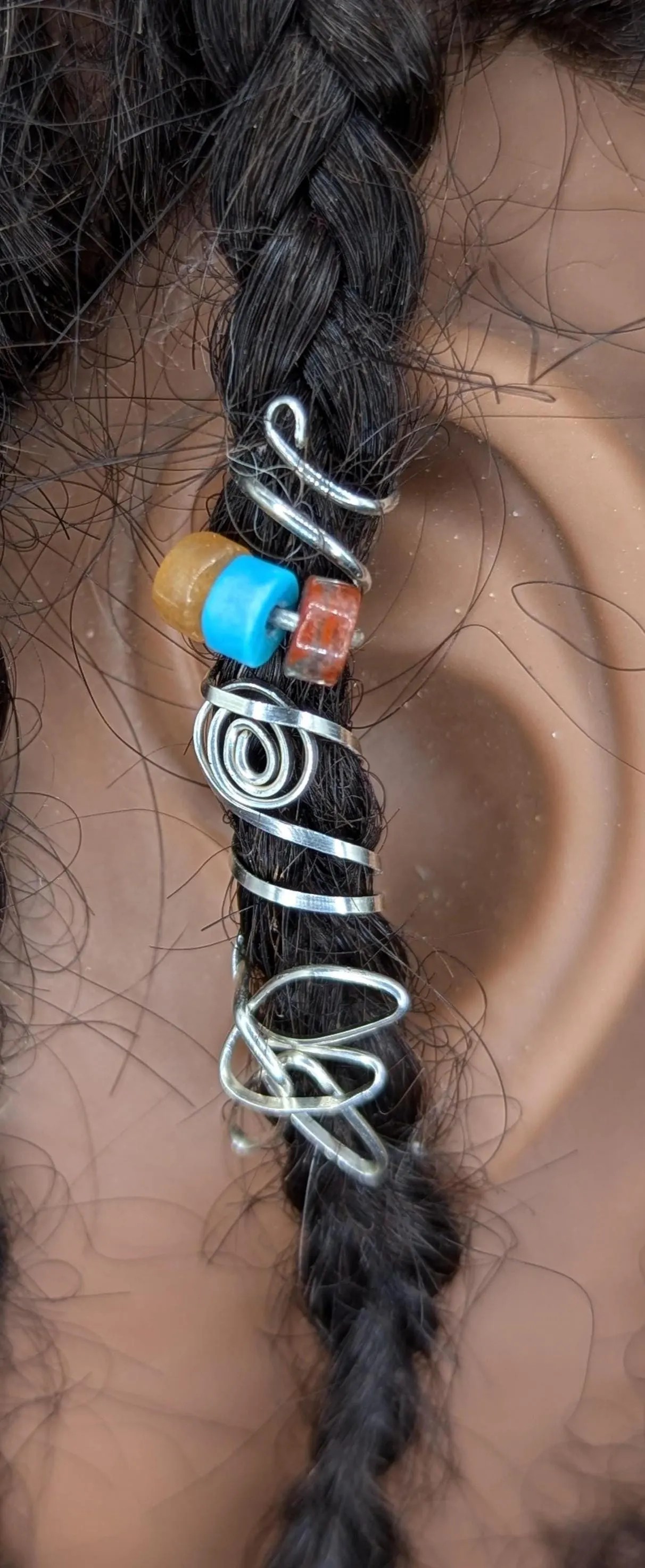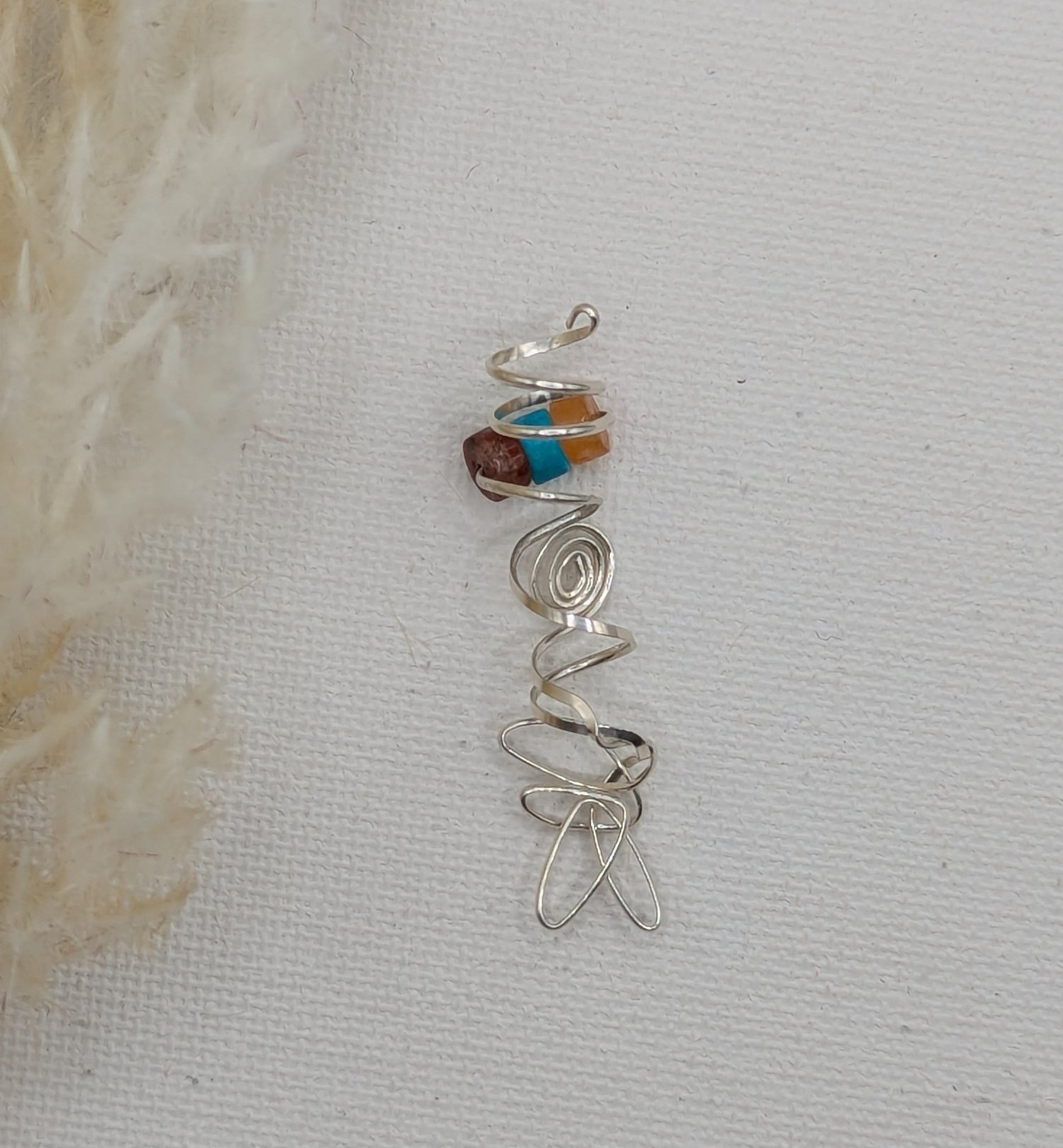 The Desert Harmony Spiral Loc Jewel is a handcrafted adornment designed to bring earthy balance and quiet elegance to your locs. Made with genuine Imperial Stone beads in warm, grounding tones and wrapped in smooth .925 sterling silver wire, this piece features a fluid spiral design that hugs the loc naturally for a comfortable, secure fit. The blend of turquoise, amber, and deep brown hues evokes desert landscapes and grounded energy, making it perfect for everyday wear or intentional styling. Each loc jewel is individually handmade, so no two are exactly alike—just like your journey.